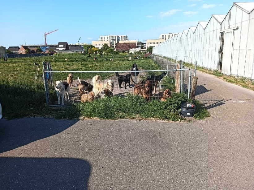 Wij hebben een groot speelveld van ruim 6000m2, dit is verdeeld is 5 aparte speelvelden. Ieder veld heeft een grote overkapping, om te schuilen tegen de regen en zon. Het gehele veld is afgezet met een hoge hekken, de honden kunnen niet ontsnappen.
